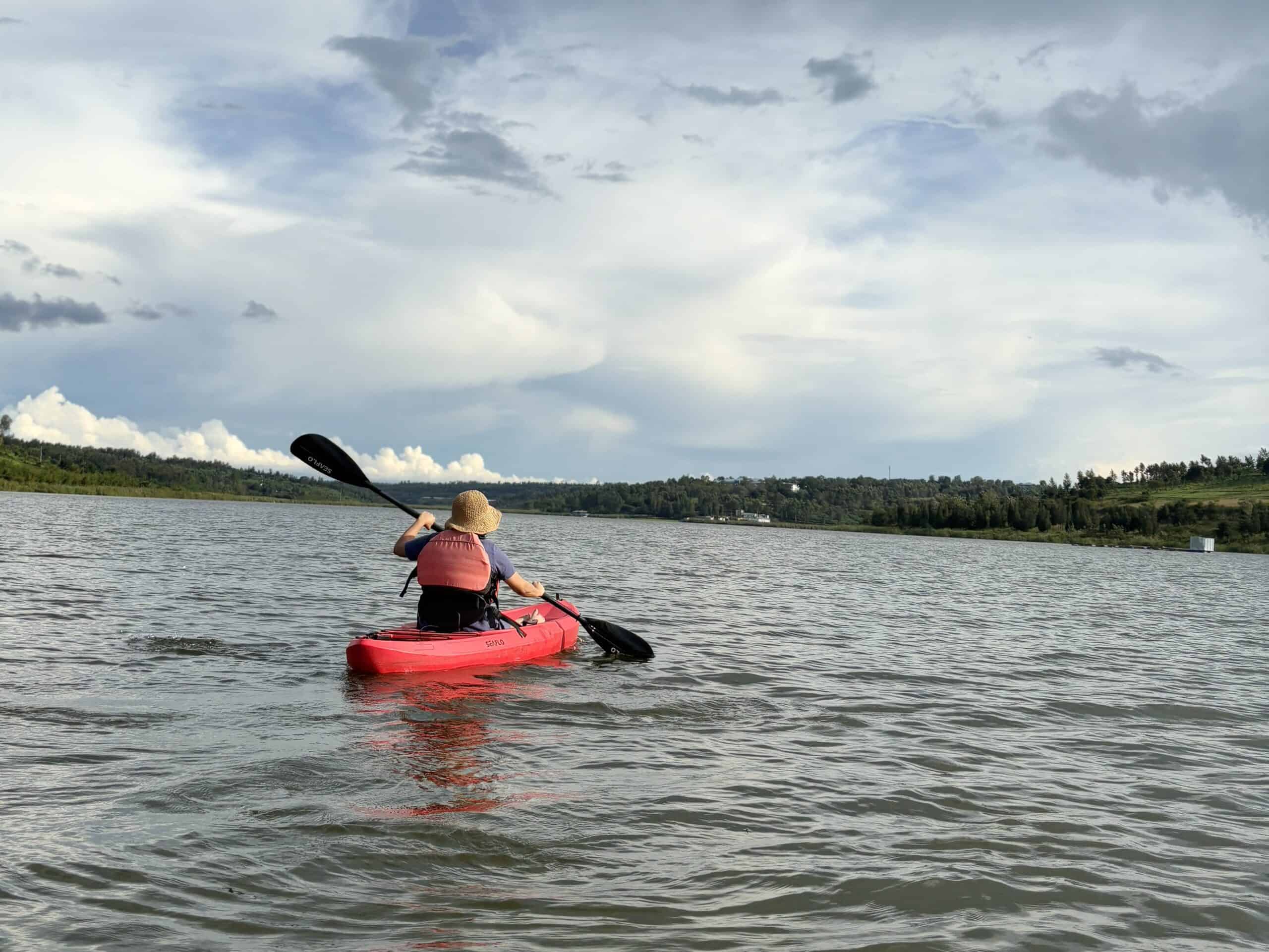 Kayaking on the vast Lake Muhazi, an easy getaway from Kigali.