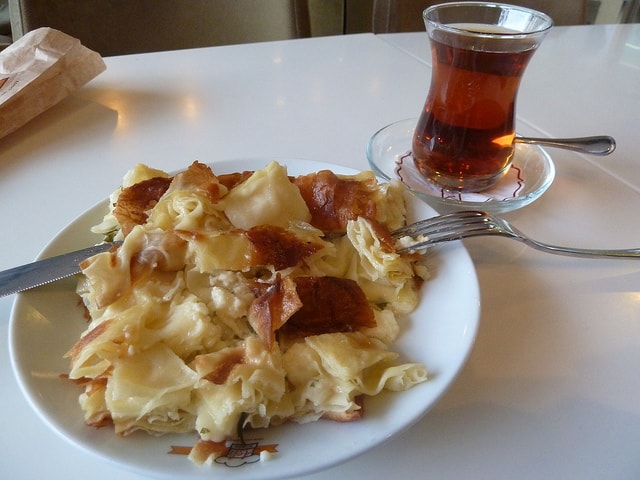 Borek: Savory Turkish quiche typically stuffed with cheese and spinach.