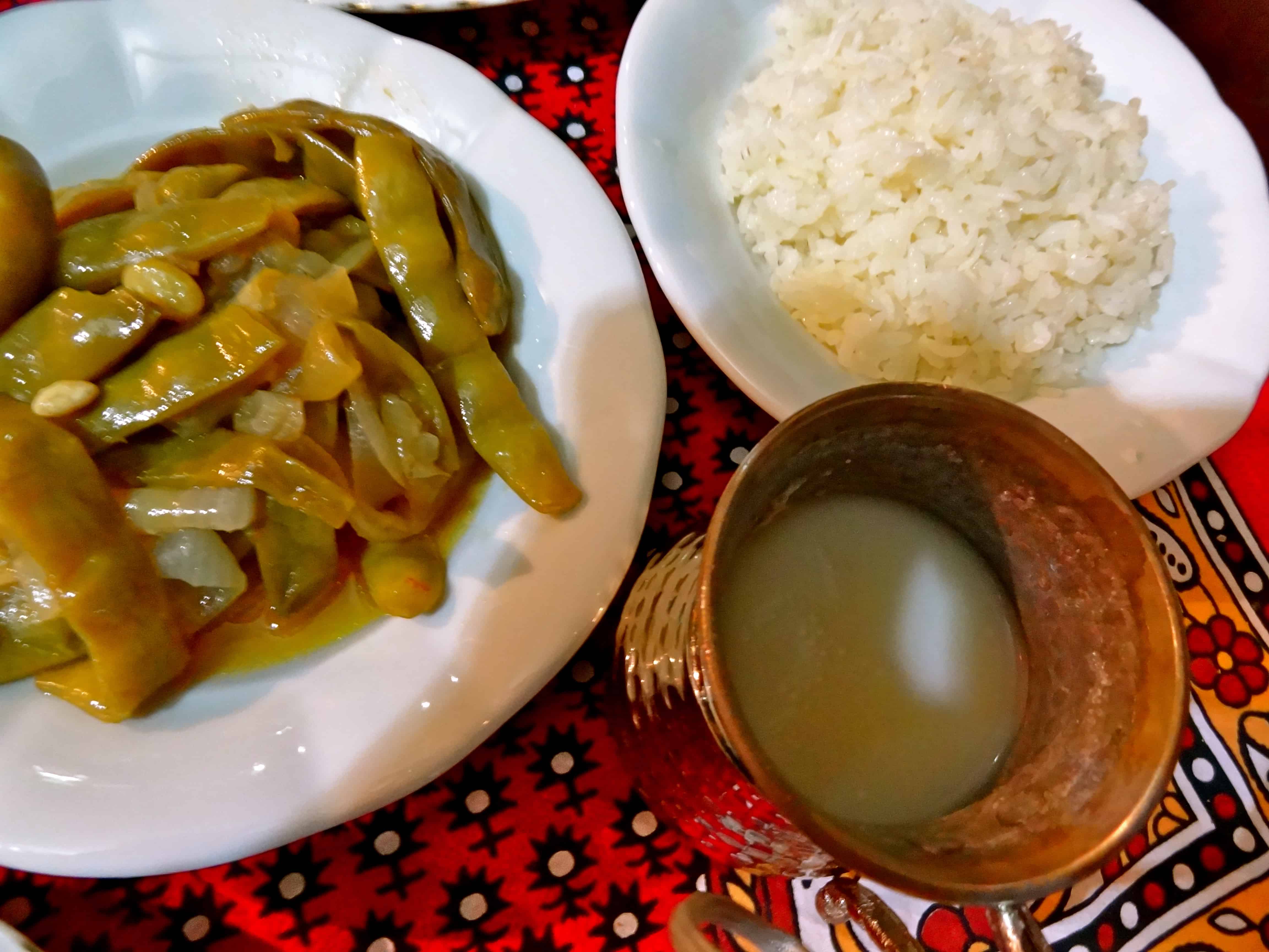 Fasuliye: Whole Peas and legumes cooked together, servedย with rice and Ayran.