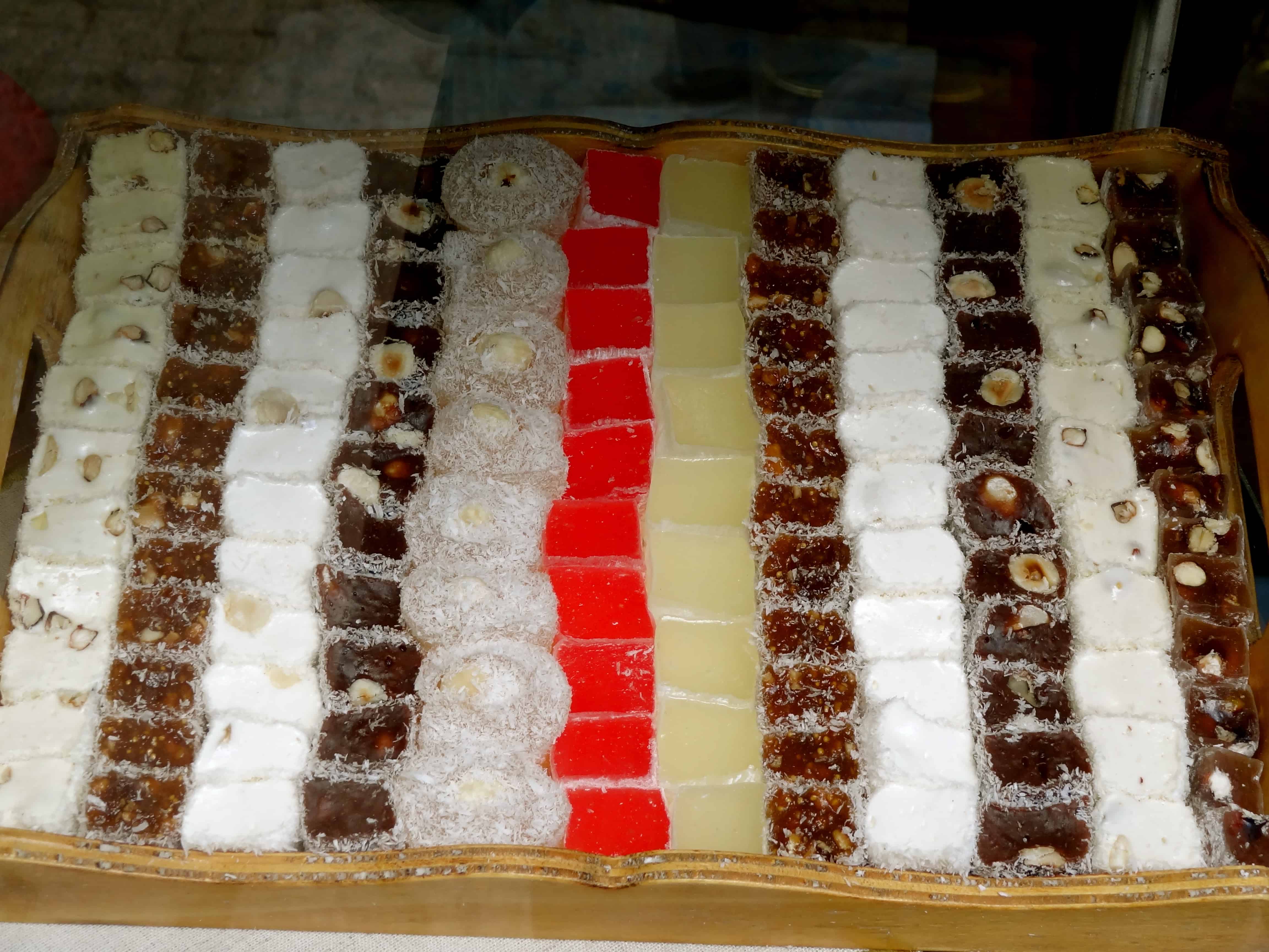 Turkish delights: Too sweet even for my sweet tooth, but loved their colorful displays throughout Turkey.