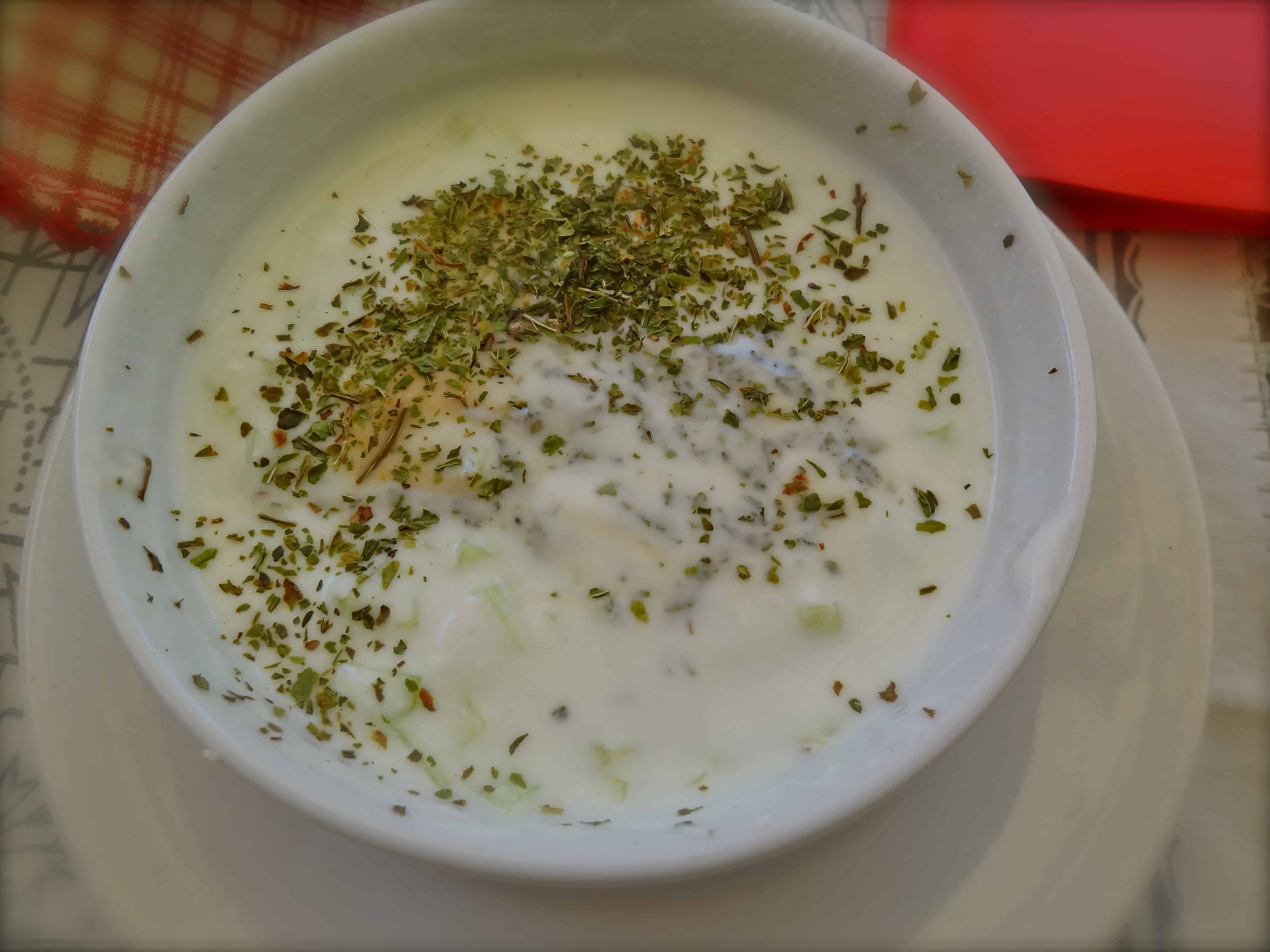 Cacik: (pronounced jejik), yoghurt churned with cucumber and mint, somewhat like the Indian raita.